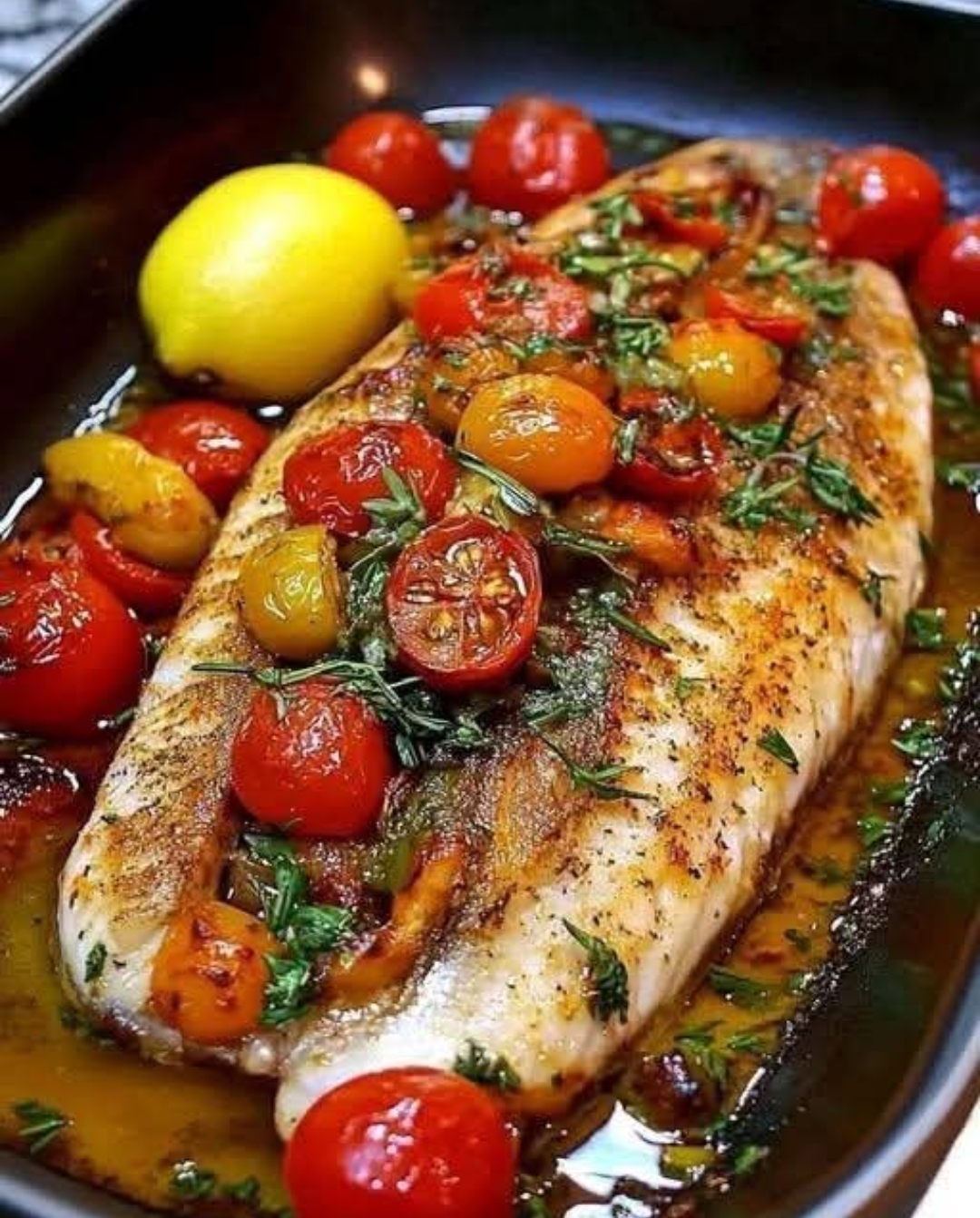 Add fish: Place fillets over the veggie mixture. Drizzle with remaining olive oil, lemon juice, and sprinkle a little extra oregano.
