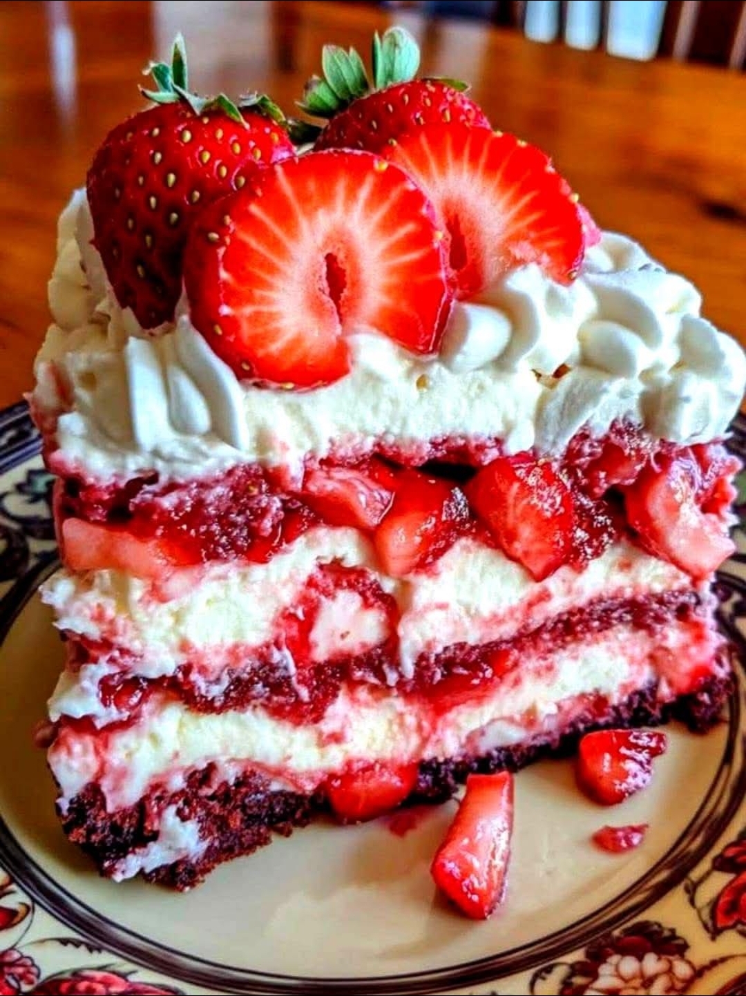 11. Slice, sprinkle with a little more fresh strawberries or powdered sugar, and serve.