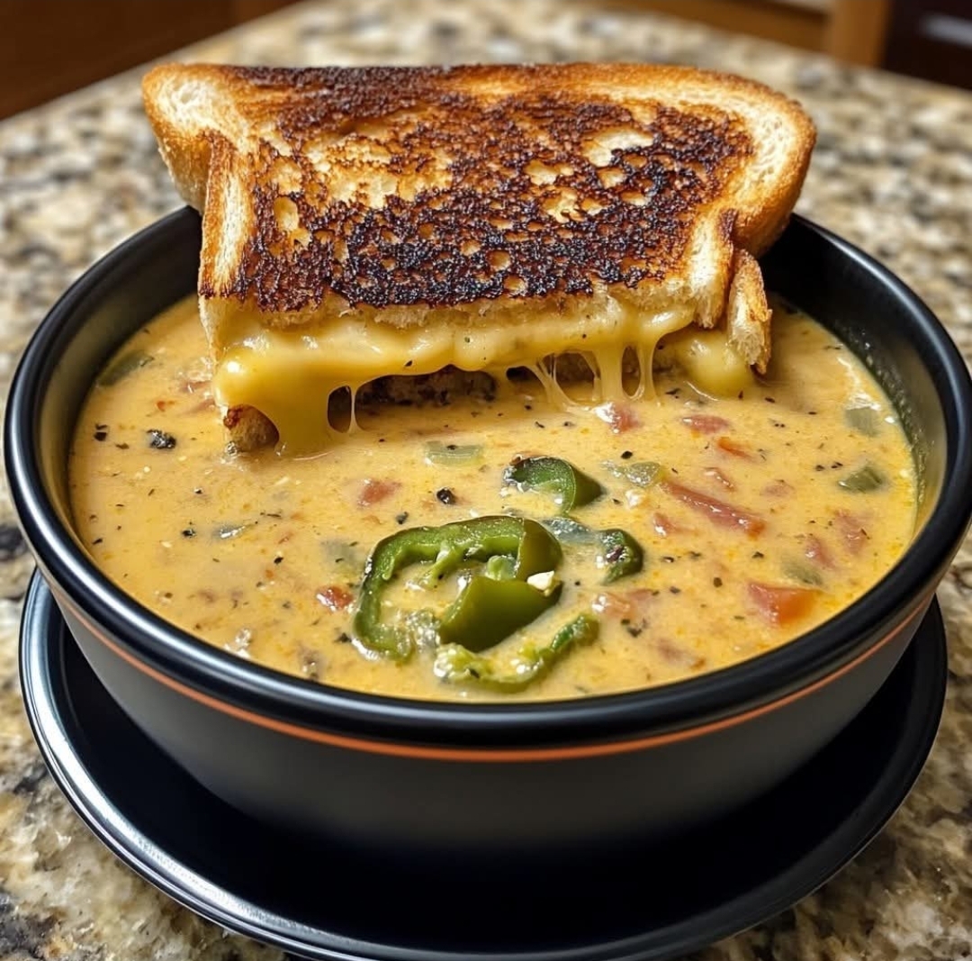 Ladle the soup into bowls and pair with grilled cheese dippers for dipping. Garnish with extra cheese, sliced jalapeños, or crumbled bacon if desired.