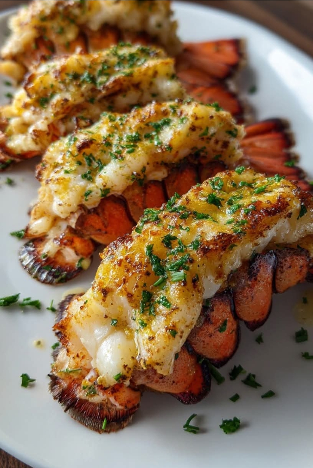 Place the lobster tails on the baking sheet and bake for 10–12 minutes until the meat is opaque and slightly browned.