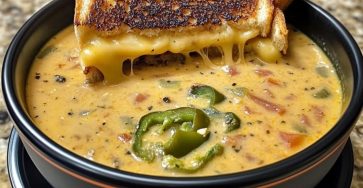 Spicy Jalapeño Popper Soup with Grilled Cheese Dippers