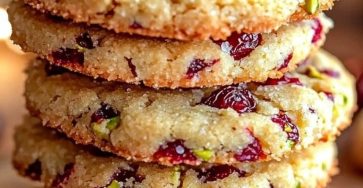 Delicate, buttery shortbread cookies studded with tart dried cranberries and crunchy pistachios. These festive cookies are perfect for holidays…