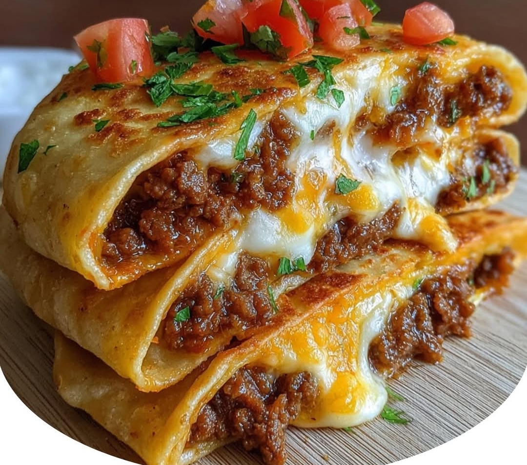 Place a tortilla flat. Add a spoonful of meat mixture to one side, sprinkle generously with cheese.