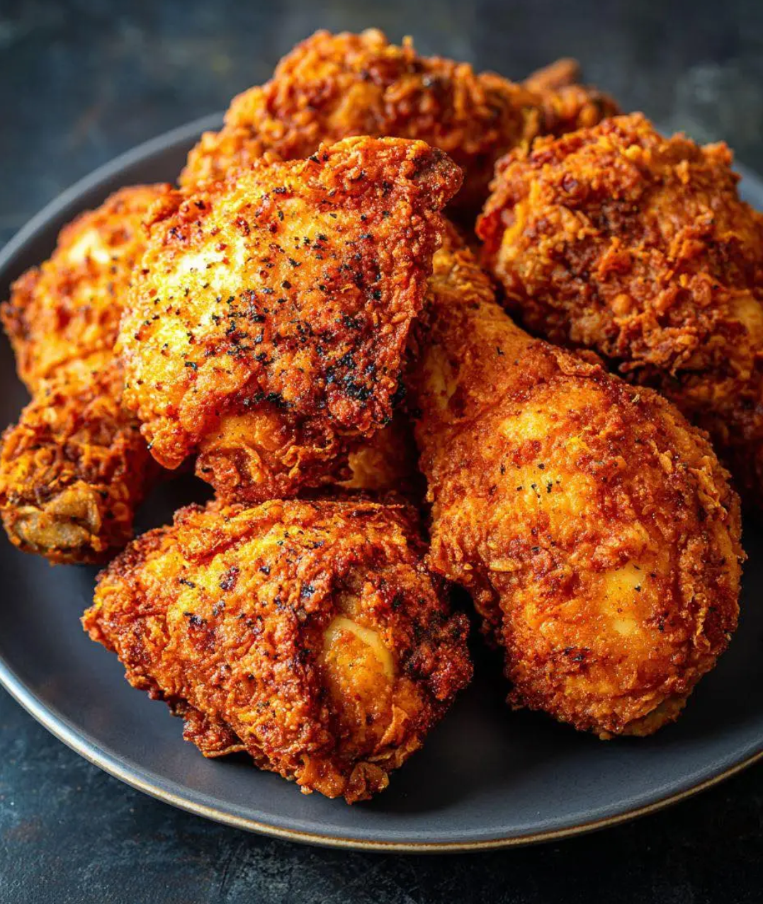 • Fry chicken in batches until golden brown and crispy, about 12–15 minutes, turning occasionally.
