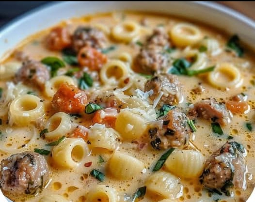 In a large pot, heat olive oil over medium heat. Add sausage and cook until browned, breaking it into chunks. Drain excess grease.