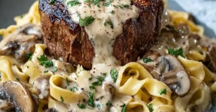 7. Place cooked rice on a plate, add the salmon, then spoon the shrimp and creamy garlic sauce over the top.