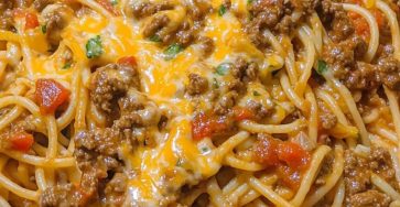 📋 Ingredients: 1 pound spaghetti noodles 2 pounds ground beef ½ yellow onion, diced 1 bell pepper, diced 2…
